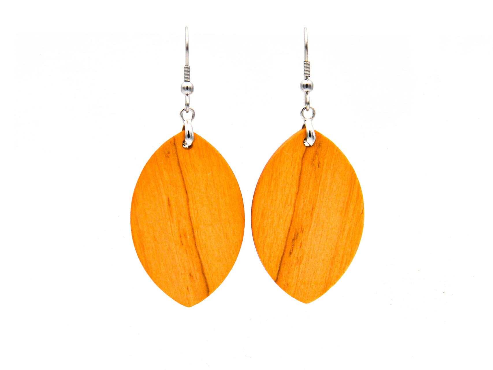 Unser Modell MAJA GROSS erinnert mit ihrer spitzen Ellipse an ein Blatt. Blätter sind so individuell wie die Maserung dieser Ohrringe. Wir bieten MAJA Olivenholz in drei Größen an.